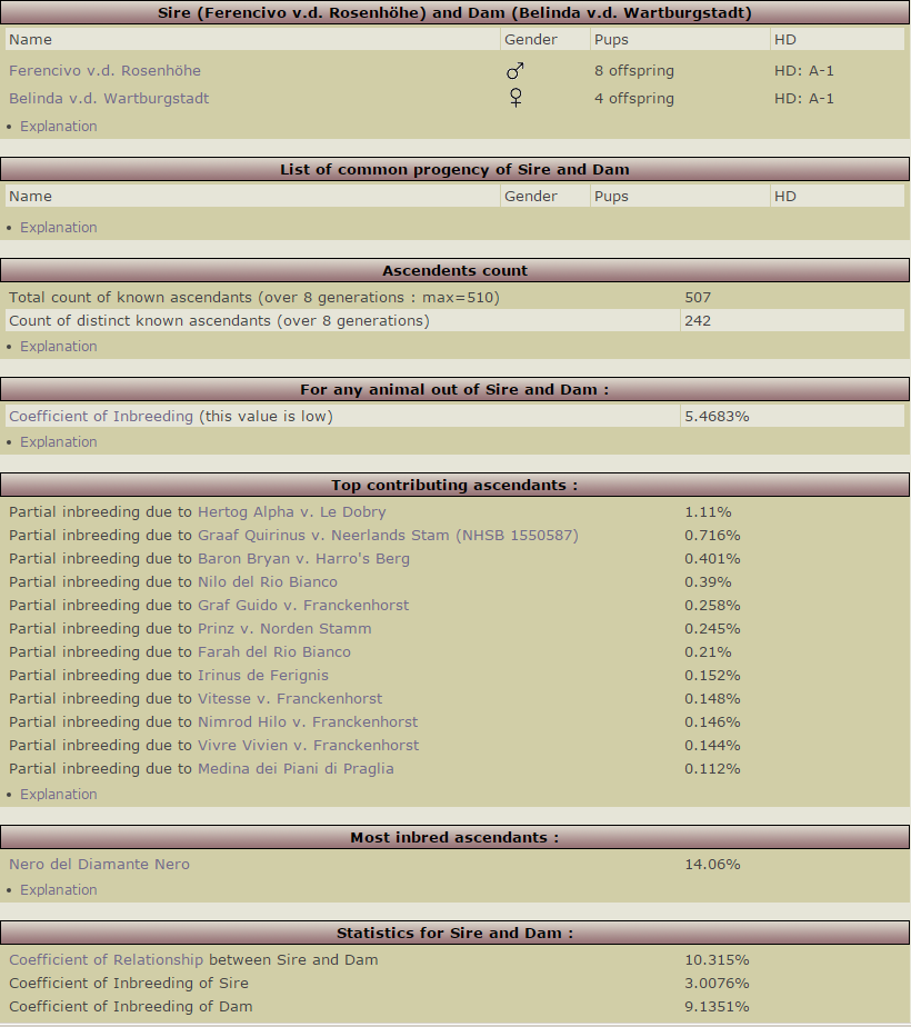 Als Vater unserer Welpen haben wir Ferencivo von der Rosenhöhe ausgewählt. Der Inzuchtkoeffizient ist bei dieser Verbindung sehr niedrig. Er beträgt bei einer Generationstiefe von acht Generationen lediglich 5,46%.