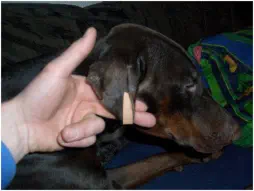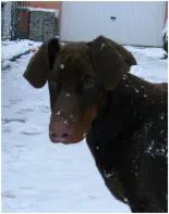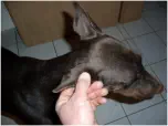 Ausführliche Anleitung zum richtigen Ohren klebenSeit geraumer Zeit ist es in Deutschland und vielen anderen Ländern in der EU verboten den Dobermann zu kupieren. Unser heutiger Dobermann hat laut Standart ein mittelgroßes, mit dem vorderen Rand gut an den Wangen anliegendes Hängeohr.Leider sieht man sehr häufig Dobermänner, deren Ohren gleich einem Pinscherohr ab- oder hochstehen. Manchmal ist es auch nur ein Ohr, dass zusammengefaltet wird oder absteht. Beides sieht beim Welpen vielleicht noch niedlich aus, beim erwachsenen Dobermann jedoch sehr merkwürdig und wirkt unserem stolzen und edlen Bild vom Dobermann völlig entgegen!Meistens kommt es in der Zeit, in der der Hund in der Zahnung ist zu solchen Fehlstellungen. Korrigiert man diese nicht rechtzeitig, ist es später im erwachsenen Alter kaum möglich eine Korrektur zu erreichen, da der Ohrknorpel hart und ausgereift ist.Eine solche Fehlstellung hat nicht immer nur ästhetische Aspekte. Asymetrisch getragene, abstehende Ohren können z.B. dem Hund in der Bewegung in die Augen schlagen. Das führt zu Reizungen und schmerzhaften, immer wieder kehrenden Augenentzündungen.Einige Beispiele für Ohrenfehlstellungen sehen sie hier.