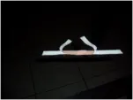 Zuerst wird das Klebeband auf der Innenseite von einem Ohr befestigt. Am besten lässt man es vorne etwas berstehen, um das Band von der Auÿenseite fr besseren Halt dagegen zu kleben.